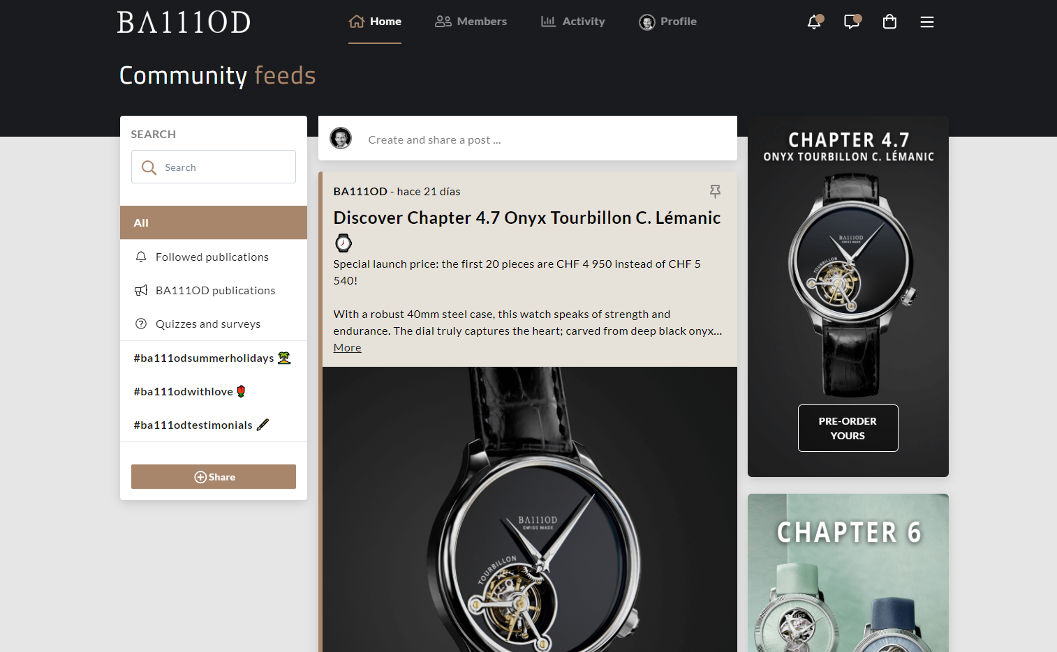 | ![]() | Roadmap: Community feed displayed on the Community widget (not planned). Publication widgets overhaul (2024) Partially used by HO (on member’s profile but not on product pages and not on social wall) | |