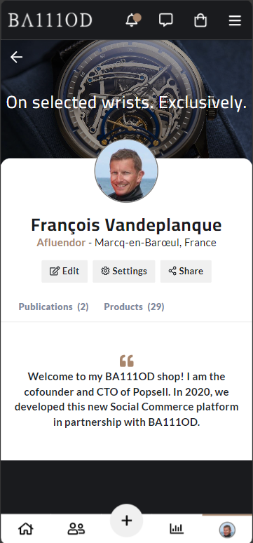 Online order | Shopping basket and tunnel (Social Commerce scenario only). The shopping tunnel is based on the Brand’s e-commerce platform which is embedded in the Popsell App. Currently available platforms: Prestashop and Shopify.