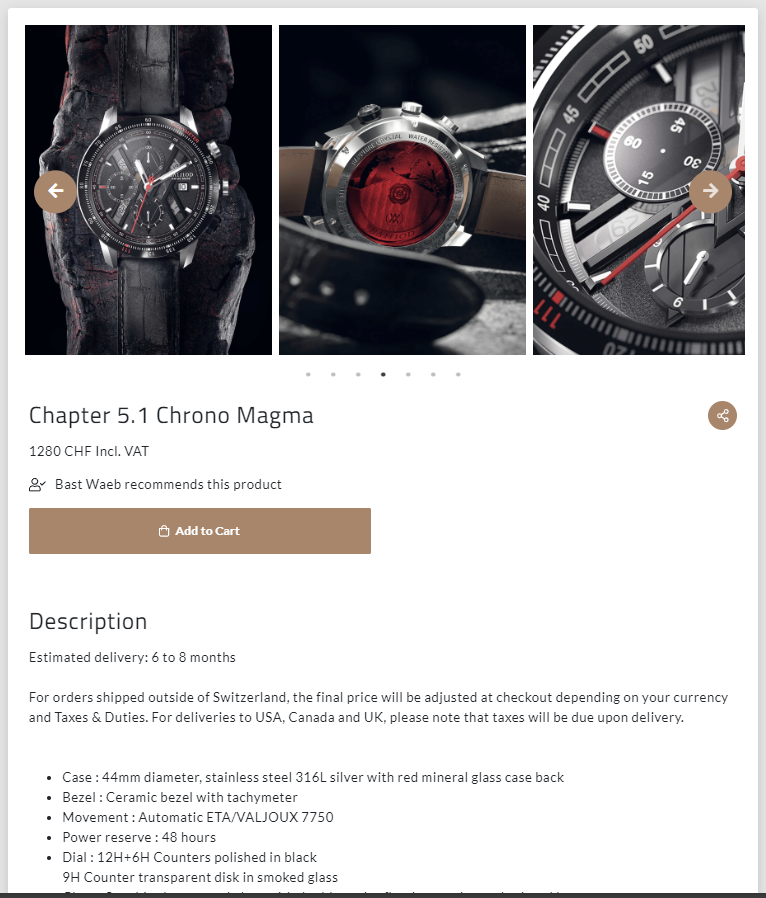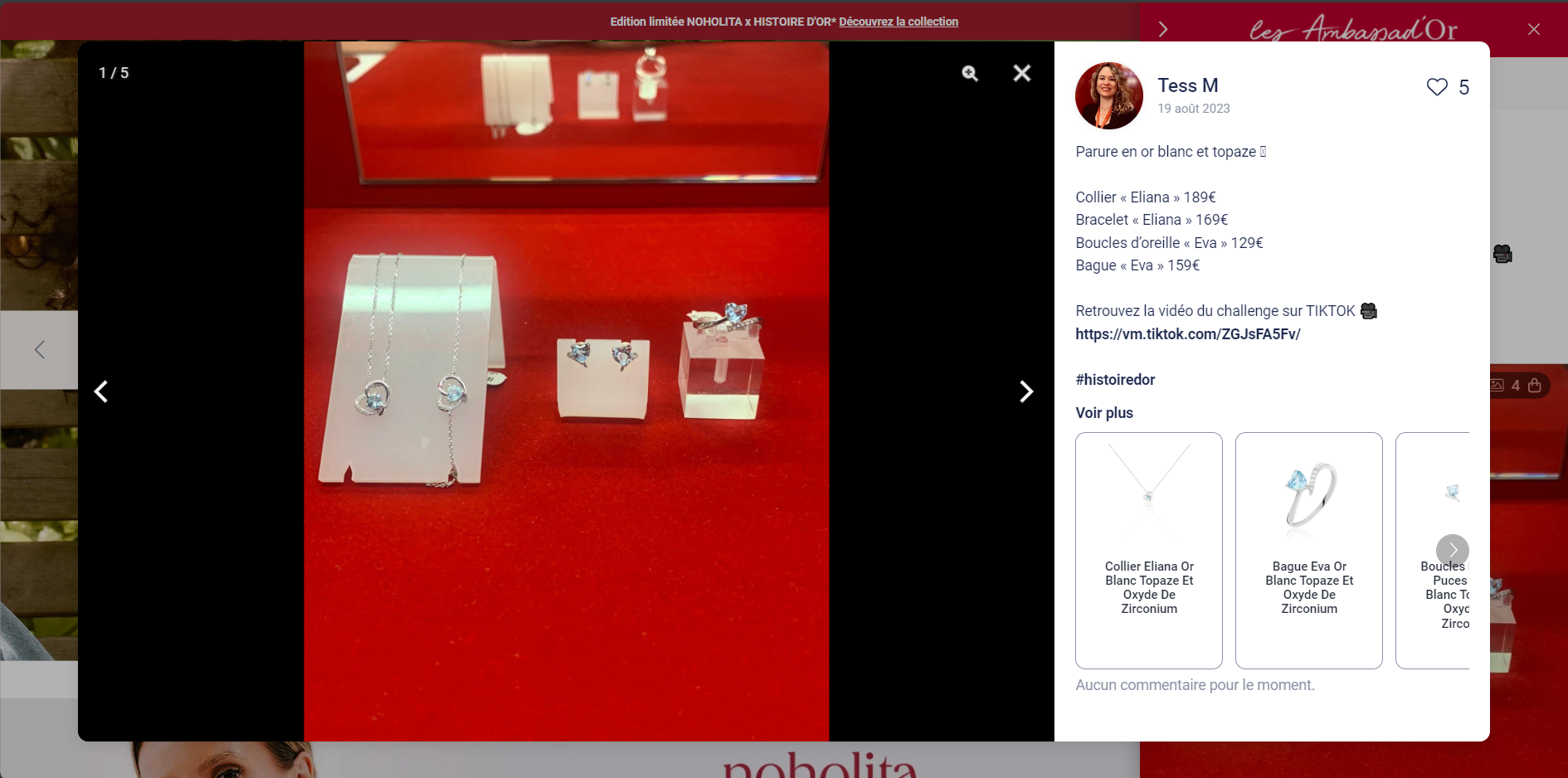 Product pages | Product pages with photos, description and prices (Social Commerce scenario only; otherwise redirected to product pages on the brand site)