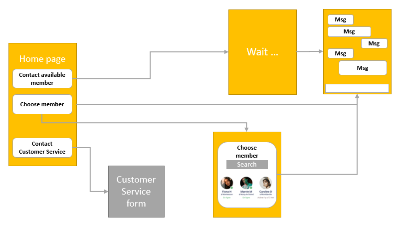 Visitor journey diagram: Initiating a conversation via the waiting list